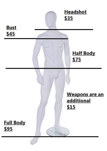 Hi, I'm Moose. I do art.I work hard to create art for your characters and bring them to life.Below is my listing of prices.